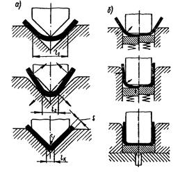 Рисунок 4 - Последовательность операции гибки а) одноугловая гибка; б) двухугловая гибка