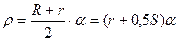 где R- наружный радиус изогнутой детали, мм; r- внутренний радиус гибки, мм; ά=S1/S- коэффициент утонения; ρ- радиус кривизны нейтрального слоя, мм.