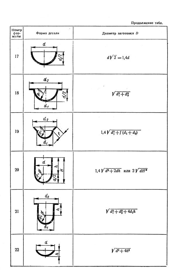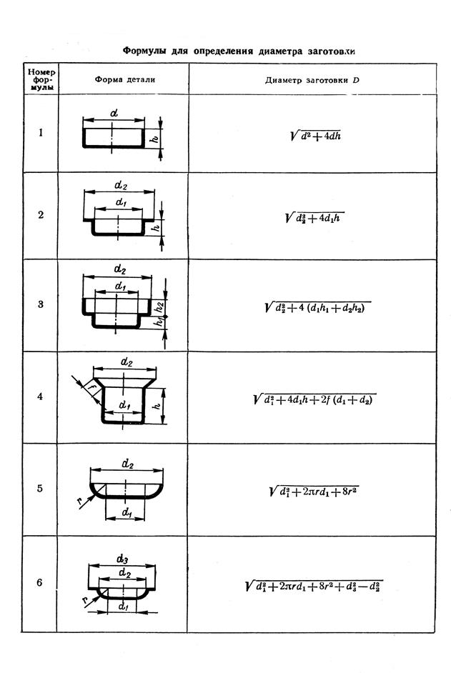 Формулы представленные в таблицах 4 и 5 могут быть применены только для вытяжки без утонения стенок. После определения размеров заготовки переходят к следующему этапу расчётов и составляют технологический процесс для данной детали. Главным образом следует определить, каким количеством переходов можно получить данное изделие, ведь в зависимости от сложности геометрии детали её можно получить в один переход, а можно в несколько переходов. Количество переходов определяется по формуле