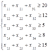 Математическая модель будет состоять из ряда ограничений: a) Исходя из физического смысла задачи Xij ³0;Cij³0 b) Ограничения по предложению (со склада нельзя вывезти продукции больше, чем там имеется).
