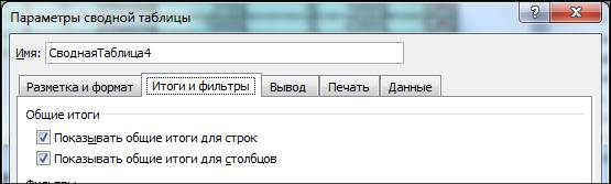 Вкладка Работа со сводными таблицами –Конструктор, группа Макет, Общие итоги · Скрытие /показ элементов поля сводной таблицы Вкладка Работа со сводными таблицами – Параметры, группа Показать или скрыть, Заголовки полей. Более актуальным является скрытие не заголовков, а элементов. Для этого следует воспользоваться стрелочками в названии строк или столбцов.