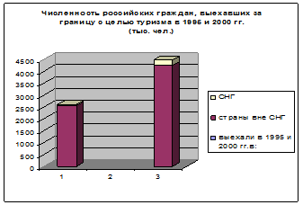 Рис. 1 Секторные диаграммы применяются для представления структуры совокупности, где вся площадь круга принимается за 100%, а сектора представляют доли составляющих частей. Например, цели поездок граждан Российской Федерации за границу (рис.2)