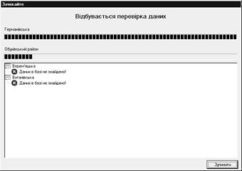 б) відкривається вікно, що супроводжує процес перевірки, відбудеться перевірка введених даних, після неї з’явиться перелік помилок, які слід виправити;