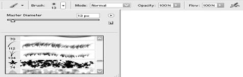 Общими параметрами для этих инструментов являются: · Opacity– задается степень непрозрачности штриха · В раскрывающемся списке "Кисть" можно выбрать размер и форму инструмента. В программе PHOTOSHOP предусмотрено существование кистей самой различной формы. Дополнительные наборы кистей находятся в папке ADOBE\PHOTOSHOP 7.0 \ PRESETS \ BRUSHES, (файлы имеют расширение.ABR). Чтобы загрузить дополнительные кисти, нужно выполнить команду Load Brushes из меню Палитры Кисти, найти и открыть папку, в которой хранятся файлы с наборами кистей, и открыть нужный файл. Новые кисти появятся в конце списка кистей. · В списке Mode, можно выбрать режим наложения пикселов (режимы наложения пикселов см. далее) Кроме общих параметров каждый инструмент имеет индивидуальные особенности. Инструмент Pencil Инструмент Brush В программе PHOTOSHOP можно создавать свои кисти. Для создания кисти нужно выделить фрагмент изображения, который будет использоваться в качестве кисти и в меню - Edit выполнить команду Define brush. Дополнительные настройки кисти, можно сделать с помощью палитры Brush располагающейся в правой верхней части окна Photoshop.