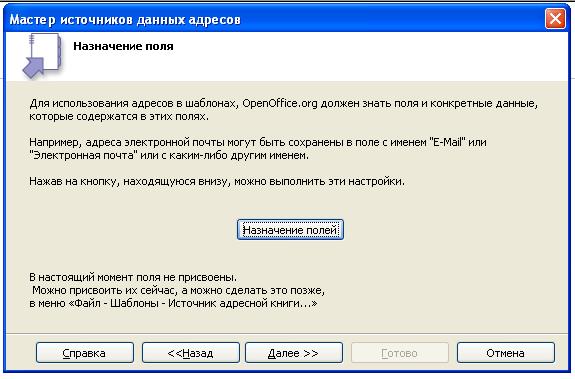 В новом окне не нажимайте кнопку Назначение полей, нажмите кнопку Далее.