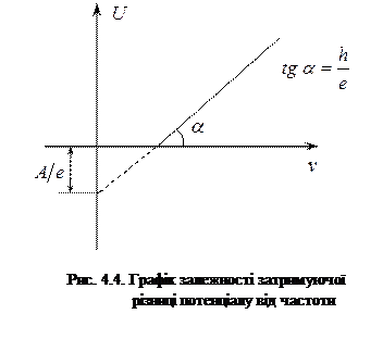 Із формули (4.5) випливає, що Uз залежить від частоти світла, падаючого на фотоелемент. Це означає, що якщо виміряти залежність затримуючої різниці потенціалів Uз від частоти ν, то за графіком цієї залежності можна визначити сталу Планка і роботу виходу електронів з металу.