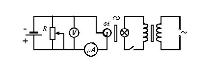 Освітлюючи фотоелемент (ФЕ) через монохроматичний світлофільтр (СФ), потрібно визначити у кожному випадку за допомогою вольтметра V затримуючий потенціал, величина якого регулюється потенціометром R. Відсутність фотоструму фіксується гальванометром (опір фотоелемента в цьому випадку дорівнює Date: 2015-07-24; view: 742; Нарушение авторских прав |