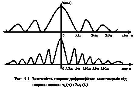 З формули (5.4 а) випливає, що звуження щілини (а) обов'язково супроводжується розширенням сектору напрямку (sin Після проходження через щілину у фотона з'являється x -компонента імпульсу (рис. 5.2):