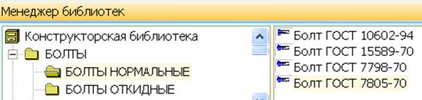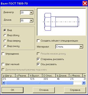 1. Создать фрагмент (меню Файл ® Создать ® Фрагмент). 2. Вычертить по размерам и в соответствии с конструкторской формой заданного изделия фрагменты фланцев болтового соединения. Выбрать из конструкторской библиотеки (см. рис. 1) крепежные элементы в соответствии с данными индивидуального задания (номинальный диаметр болта, шайбы, гайки) и проведенными расчетами длины болта (меню Библиотека