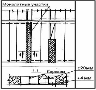 1. При бетонировании монолитных перекрытий используется столовая или рамная опалубка "ДОКА". 2. Раскладка щитов опалубки на этажах, очередность бетонирования по захваткам, узлы крепления опалубки, места крепления подкосов, а также дополнительные требования при бетонировании с использование опалубки данного типа указываются в проекте, разработанном владельцем опалубки. 3. Разборка опалубки перекрытия разрешается после набора бетоном прочности не менее 70% от проектной. 4. При ведении монолитных работ на участках, не имеющих надежных ограждений, рабочие обязательно должны крепиться страховочным поясом с удлинителем во избежание падения с высоты. Места крепления указывает мастер или прораб.