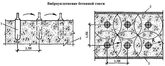 1 –рабочий орган вибратора (булава); 2 – разделительная сетка между захватками