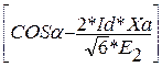 Uda=Edo*COSa - (DUx + DUr+DUa+DUф)=Eda - DUd, (1.10.) где DUx = DUa = q*(Uо + Ia*R д); DUф=Id*Rф. 5. Для двух значений тока нагрузки (Id=0 и Id=Idн) рассчитать и построить регулировочные характеристики выпрямителя Uda=f(a): Uda=Edo * COSa - DUd, (1.11.) 6. Для двух значений угла регулирования (a=0 и a = a max) рассчитать и построить: а) графики зависимости угла коммутации от тока нагрузки