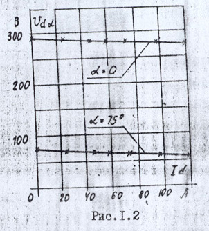 4. Для двух значений угла регулирования (a = 0 и a = a max) рассчитать и построить внешние характеристики выпрямителя Ud=f(Id) по шести значениям тока нагрузки Id = (0; 0,2; 0,4; 0,6; 0,8; и 1,0) Idн
