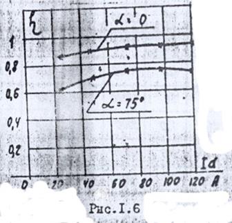 При расчете зависимости входного коэффициента мощности X от тока нагрузки численные значения углов коммутации g при соответствующих значениях Id берем непосредственно из табл 1.6. Вычисления для a=0 и a=75 эл.град. ведем по формулам (соответственно): X=0,955* X=0,955*