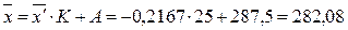 (*) в качестве А обычно берут значение х, стоящее в середине вариационного ряда (А=287,5). (**) K обычно равно ширине интервала (K=25)