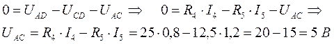 Чтобы вычислить ток I 3 необходимо знать падение напряжения U AC, которое определим по второму закону Кирхгофа, выбрав положительный обход контура ADCА по часовой стрелке, как показано на рис. 6а: