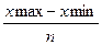 1-ая группа xmin---xmin+i; 2-ая группа xmin+i---xmin+2i; 3-ая группа xmin+2i---xmin+3i и т.д. Количество единиц в группе не должно быть менее 3.