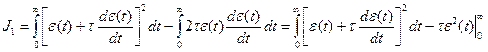 Интеграл (10) определяет площадь под кривой квадрата динамической ошибки. Чем меньше этот интеграл, тем быстрее затухает переходный процесс и, следовательно, интеграл J0 служит мерой быстродействия системы. В ряде случаев система, удовлетворяющая условию минимума J0, имеет значительную колебательность переходного процесса. Для уменьшения колебательности можно попробовать воспользоваться оценкой J1 (11). Представим этот интеграл в виде