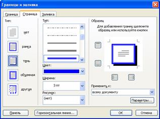 Для установки границ страниц или таблицы выполните последовательность команд [Формат→Границы и заливка] выберите стиль оформления (тип, цвет, ширина, рисунок) укажите соответствующие границы на образце (смотри рисунок 4) Date: 2015-07-24; view: 469; Нарушение авторских прав |