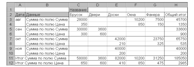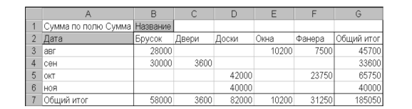 6. Повторить группировку, выбрав в качестве критерия кварталы и месяцы одновременно. Сопоставить полученные результаты с представленными на рисунке 26.