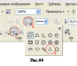 8. Инструментом Выделение щёлкните по фигуре два раза и, получив маркеры вращения, стащите маркер центра вращения вверх, как показано на рисунке 71 9. Выполните копирование с поворотом фигуры и получите цветок, изображенный на рисунке 72