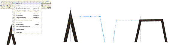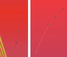 Не снимая выделение, выберете инструмент Форма, на границе объекта обозначатся опорные точки, выделите поочерёдно или обе (с клавишей Shift) точки в серединной части и удалите их, так легче будет править форму (рис.81 слева). Затем перетащите одну из нижних угловых точек, придавая полоске расширяющуюся к низу форму (рисунок 81 справа)