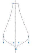 5. Преобразуйте нижнюю точку в угловую. Щёлкните по ней инструментом Форма и в открывшемся меню выберете Перегиб. Смотри на рисунок 68 6. Перемещая концы стрелок выделенной точки, придайте фигуре внизу остроконечную форму. Смотри на рисунок 69 7. Поочерёдно выделяя боковые точки и вытягивая векторы вниз, редактируйте форму лепестка. Смотри на рисунок 70