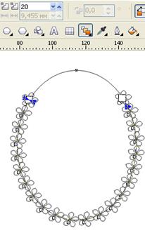Инструментом Эллипс создайте небольшой эллипс. Размер его должен примерно в 12-15 раз превосходить размер цветка. Создайте дубль цветка и расположите оба цветка на линии эллипса, как показано на рисунке 73. 13. Выберете инструмент Перетекание. Установите на панели свойств в окошке “Число шагов” значение 20. Затем “кликните” по одному цветку, и не отпуская левую кнопку мыши, вытягивайте второй маркер ко второму цветку и “кликните” его.