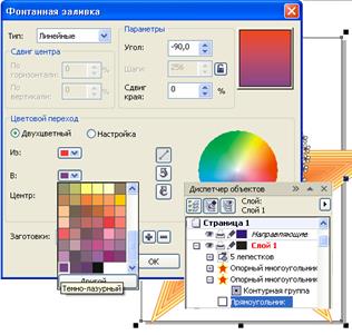 выбираем цвета: конечный и исходный и в окошке “Сдвиг края” установим значение 20 (чем больше это значение, тем более резкая граница перехода от одного цветового тона к другому, при значении 0 переход наиболее плавный.