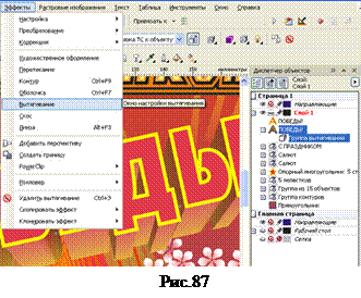 35. Аналогично выделите вторую и четвёртую кривые и задайте цвет заливки оранжевый. 36. Теперь создадим внутреннюю контурную группу для этой же надписи. Выделите текст, выберете Интерактивный контур и задайте параметры как на рисунке. Обратите внимание, что для контура, создаваемого внутрь объекта, выбираем на панели свойств первую кнопку (смотри рисунок 86). 37. Теперь разъедините текст и контурную группу. Выделите только контурную группу и задайте цвет заливки светло жёлтый. 38. И последнее действие с этой надписью – сгруппировать с помощью диспетчера объектов текст и все контуры. 39. Теперь добавим слово ПОБЕДЫ!