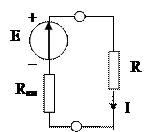 Источника ЭДС и источника тока. Реальный источник энергии в электрической схеме может быть представлен как источник ЭДС E с последовательно включенным сопротивлением Rвн