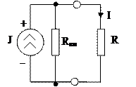 Если требуется источник тока (J, Rвн) заменить эквивалентным источником ЭДС (E, Rвн), то величина ЭДС вычисляется: