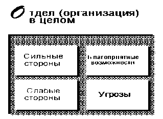 Рис. 5 Матрица SWOT организации в целом К сильным сторонам хлебокомбината относятся внутренние факторы, такие, как высокое качество товара, уровень подготовки работников. Эти факторы считаются сильными сторонами, поскольку дают определенные преимущества в конкурентной борьбе. К слабым сторонам также относят внутренние факторы, такие, как более высокие цены на продукцию, чем у конкурентов, малые размеры организации. Возможности (благоприятные) исходят из внешней среды, такие, как изменение вкусов потребителей, новые рынки для экспорта, благоприятные курсы валют, снятие государственных ограничений и т.п. Эти факторы могут способствовать улучшению деятельности предприятия. К угрозам также относятся внешние факторы, такие, как выпуск нового товара конкурентом, появление нового соперника, предлагающего низкие цены, или неопределенность в политике правительства. Эти факторы негативно сказываются на деятельности предприятия. Date: 2015-07-24; view: 407; Нарушение авторских прав |