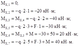 Рис. 7 Определяем изгибающие моменты в характерных сечениях.