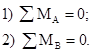 В отличие от консольных балок, при расчете балок на двух шарнирных опорах необходимо сначала определить опорные реакции из уравнений статики, так как и в левую, и в правую отсеченные части для любого сечения, расположенного между опорами, попадает соответствующая реакция. Для плоской системы число уравнений статики в общем случае равно трем. Если балка загружена только вертикальными нагрузками, то горизонтальная реакция шарнирно-неподвижной опоры равна нулю, и одно из уравнений равновесия