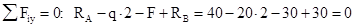 2. Намечаем характерные сечения. В отличие от консольных балок здесь известны обе опорные реакции, поэтому для любого сечения можно рассматривать как левую, так и правую отсеченную часть. 3. Определяем поперечные силы в характерных сечениях.