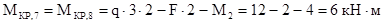 Участок 7-8 закручивается нагрузкой с плечом 2м и в противоположную сторону - силой с плечом 2м и моментом , следовательно: