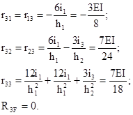 Коэффициенты r11, r12 и свободный член R1F определим из условия равновесия узла 2: