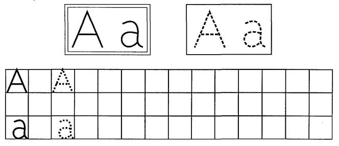 Задание 3. Рассмотри большую и маленькую буквы А в двойной рамочке. Обведи большую и маленькую буквы А по точкам. Пропиши строчки букв А.
