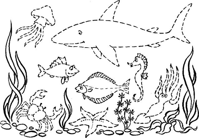 ЗАНЯТИЕ 14. Звук и буква К Задание 1. Посмотри, перед тобой аквариум с морскими обитателями. Кто из морских обитателей живет на дне аквариума? А кто находится ближе к поверхности?