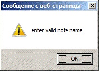 Рис. 19.5. Сообщение о некорректном значении наименования записи Теперь, рассмотрим функцию формирования списка записей: function listLoad(){ var list = document.getElementById('notelist'); /* получаем доступ к элементу - списку нашей веб - страницы*/ for(var i in localStorage) /* цикл для перебора каждого значения, сохраненного в localStorage, при этом i, принимает значение идентификатора хранимых данных, т.е., в нашем примере, переменная i содержит наименование записи*/ { var a = document.createElement('a'); /* создаем новый html - */ a.setAttribute('onclick', "loadNote('"+i+"'); return false;"); /*определяем атрибут onclick, при клике, в нашем случае, вызовется функция loadNote с параметром Наименования записи*/ a.innerText = i; /* задаем значение текста ссылки эквивалентным наименованию записи*/ var element = document.createElement('li'); /* создаем новый html - элемент, а именно пункт списка*/ element.appendChild(a); /* добавляем пункту списка дочерний элемент – ссылку*/ list.appendChild(element); /* добавляем списку дочерний элемент – пункт списка*/ }Date: 2015-07-22; view: 565; Нарушение авторских прав |
