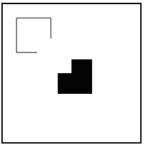Для отрисовки прямоугольных фигур используются методы strokeRect для прямоугольника без заливки цветом, иfillRect для прямоугольника залитого цветом. Для иллюстрации примеров лекции, создадим HTML – файл, для простоты разместим JavaScript код в рамках самой страницы: <html> <head> <script type="application/x-javascript"> function createImage() { var canvas = document.getElementById("canvas"); var ctx = canvas.getContext("2d"); } </script> </head> <body onload="createImage();"> <canvas id="canvas" style="border: 2px solid black" width="200" height="200"> </canvas> </body></html>Функция createImage вызывается при загрузке тела html – документа. В рамках самой функции мы получаем ссылку на сам холст (canvas) и ссылку на контекст (ctx). Рассмотрим подробнее метод и его параметры: strokeRect (x,y,w,h)x и y – координаты верхней левой вершины прямоугольника (по горизонтали и вертикали соответственно); w и h – ширина и высота прямоугольника соответственно. Метод fillRect принимает те же параметры, что и strokeRect. Изменим функцию createImage следующим образом, для отрисовки двух квадратов: function createImage() { var canvas = document.getElementById("canvas"); var ctx = canvas.getContext("2d"); ctx.strokeRect(20,20,50,50); ctx.fillRect(80, 80, 50, 50); }В результате, получим холст: