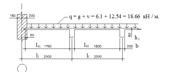 Рис. 3 Расчётная схема монолитной балочной плиты.