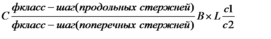 где С – буквенное наименование сварной сетки; ф – диаметр арматуры; В – ширина сетки; L – длина сетки; с1 – длина свободных концов продольных стержней; с2- то же поперечных.