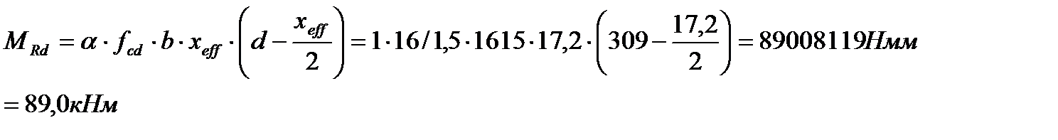 MRd =89.0кН·м>Msd=79,6кН·м, т.е. прочность сечения обеспечена.