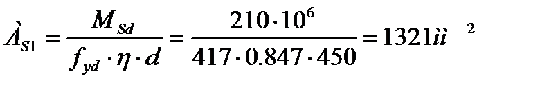 Так как αm<αm,lim – сжатая арматура по расчету не требуется. 9. По таблице приложения 7 при αm=0.259 η=0.847 10. Требуемая площадь сечения растянутой продольной арматуры Принимаем 3Ø25 (As1=1473мм2) Date: 2015-07-24; view: 452; Нарушение авторских прав |