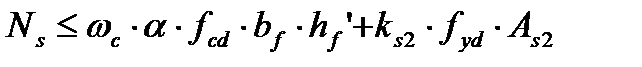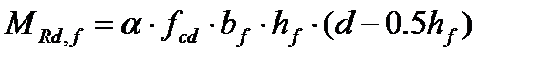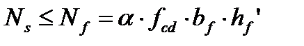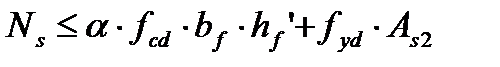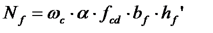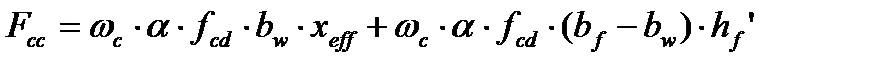 Если условие выполняется, это означает, что нейтральная ось располагается в пределах полки и сечение рассчитывают как прямоугольное. Если условие не выполняется, производят расчет таврового сечения, для которого равнодействующая усилий в сжатом бетоне определяется по формулам: