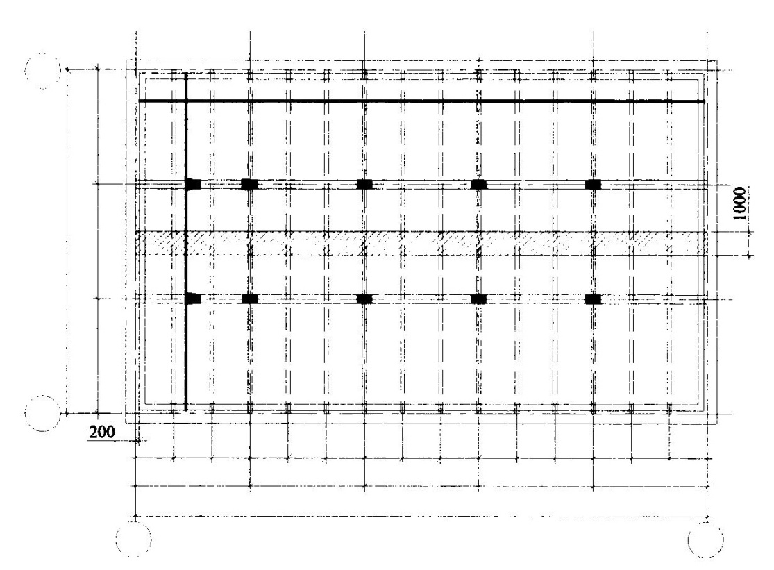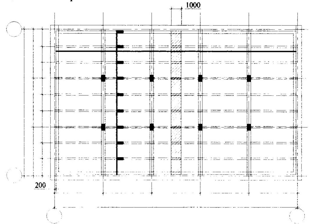 Рис.1. План монолитного перекрытия здания с главными балками в продольном направлении.