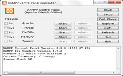 ХАМРР – свободно распространяемая программа и весь процесс установки не требует никакого вмешательства со стороны пользователя, кроме нажатия кнопки «Next». После установки ХАМРР открывается панель управления сервером (рис. 2).