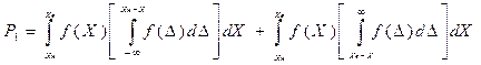 2. Принято решение "брак", когда значение контролируемого параметра находится вне пределов допускаемых значений, т.е. имели место события Х < Хдн или Х > Хдв и Хо< Хдн или Хо> Хдв. При оговоренных допущениях вероятность события "негоден" или "брак"